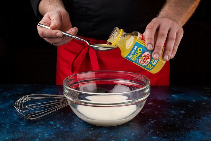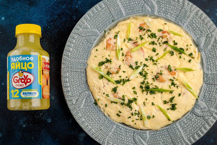 Взбейте белок Grovo и молоко. Посолите смесь.