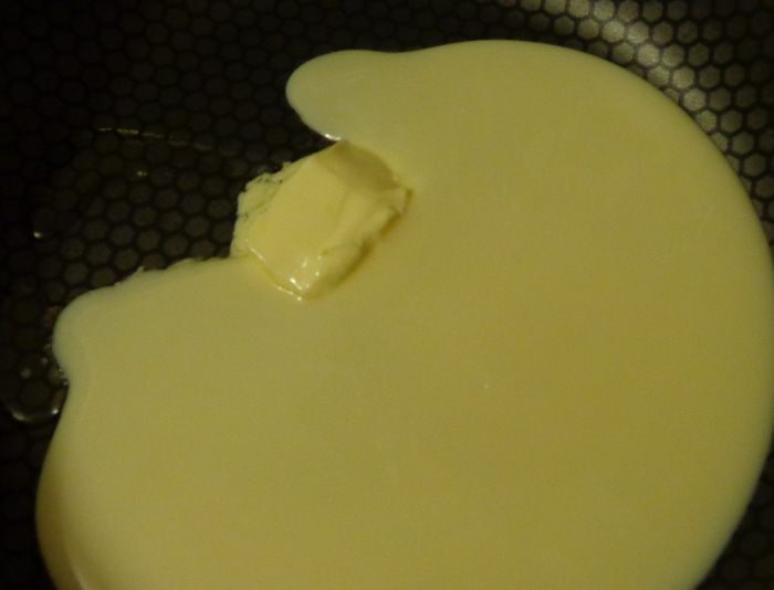 в сковородке растопить масло, влить сгущенку и варить на сковородке на маленьком огне, постоянно помешивая, минут 10 до загустения.