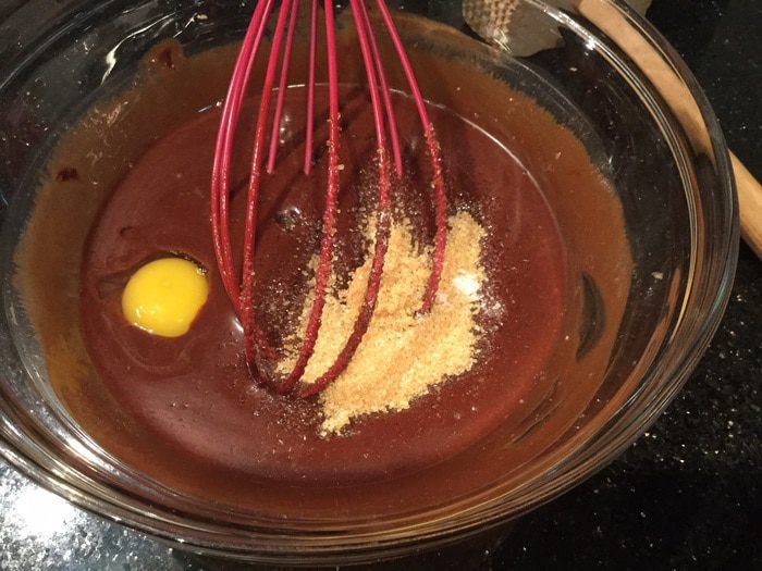 Духовку разогрейте до 180°C. Сливочное масло и шоколад растопите и смешайте.