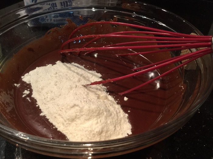 Муку смешайте с солью и разрыхлителем. Добавьте муку к шоколадной массе.