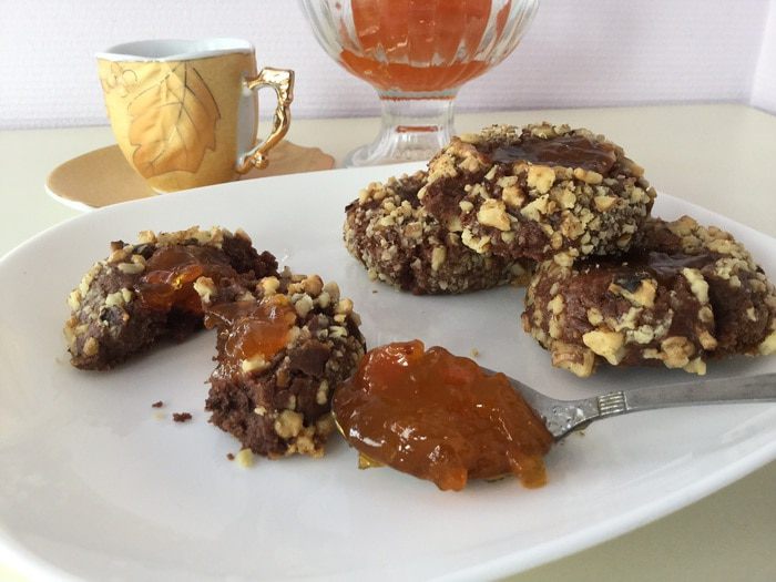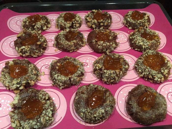 Поставьте противень в духовку и выпекайте 8 минут, затем достаньте и заполните серединку каждой печенюшки 1 ч. л. джема. Поставьте обратно в духовку и выпекайте ещё 10 минут. Выньте печенье из духовки и дайте остыть, после чего переложите.