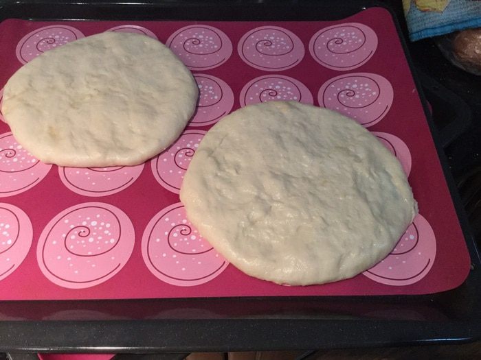 Опять раскатайте в лепешку. Переложите лепешки на противень застеленный пекарской бумагой или силиконовым ковриком.