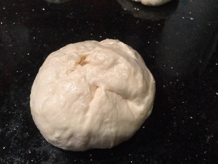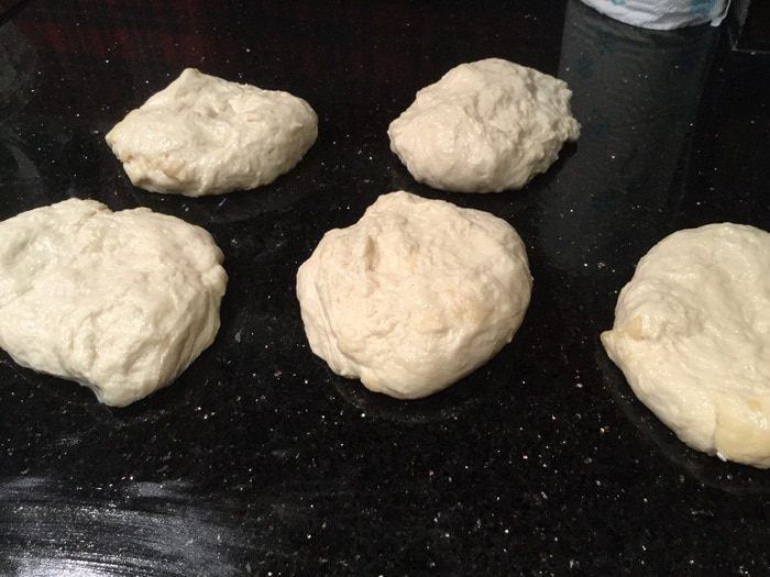 Рабочую поверхность и руки смажьте растительным маслом. Обомните тесто и разделите на пять равных частей.