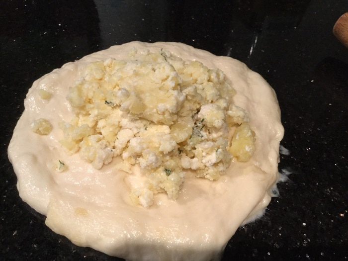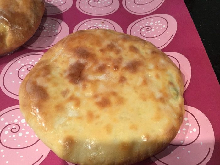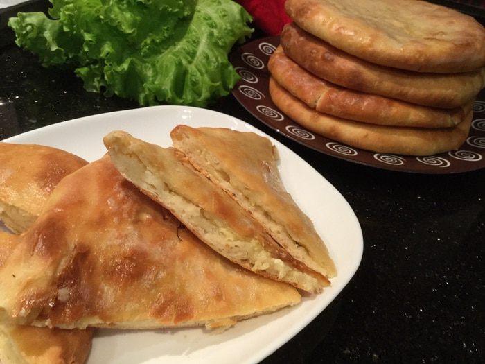В этом году мы отдыхали в Ереване, и конечно же я не могла остаться равнодушной и накупила кучу домашних сыров, вот с одним из них я и приготовила эти лепешки. Это домашний творожный сыр, с ароматными травами и острым перцем, он очень соленый, поэтому к начинке я добавила картофельное пюре. Такой сыр можно заменить сулугуни, добавив к нему ароматные травы, или домашним сыром, который будет у вас.