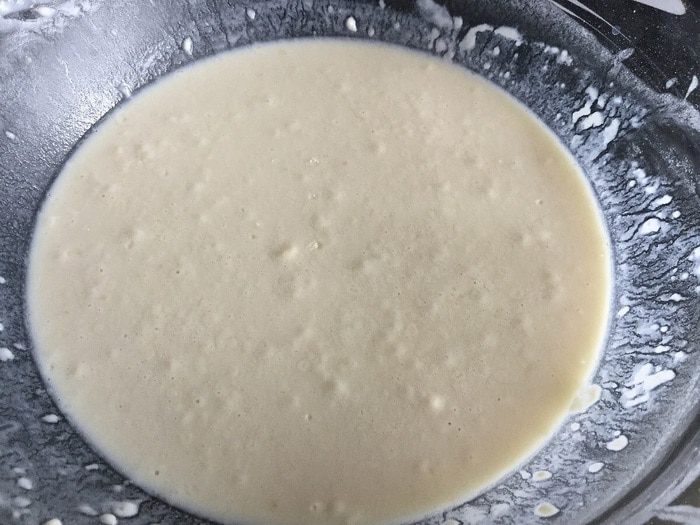 В тёплом молоке растворите дрожжи, сахар и соль, добавьте 2 ст. л. муки, хорошо перемешайте и оставьте на 15 минут в тёплом месте.