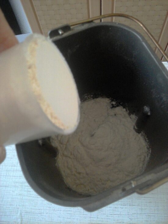 Строго по инструкции добавляем в чашу хлебопечки продукты! Начинаем с воды. Вода должна быть кипяченая, комнатной температуры. Вливаем воду в чашу.