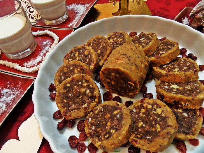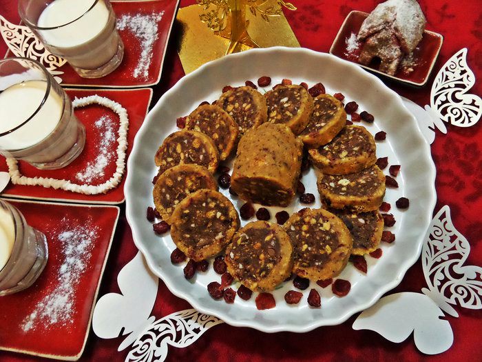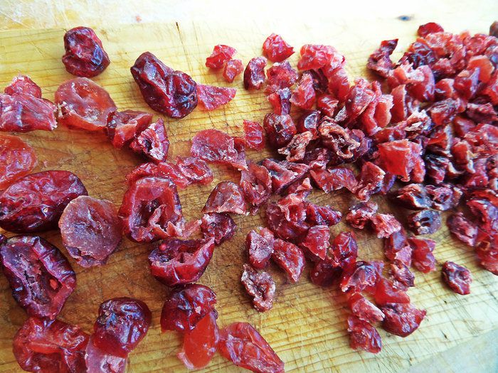 Для "оболочки", т.е. второй части, я взяла вяленую клюкву и немного измельчила.