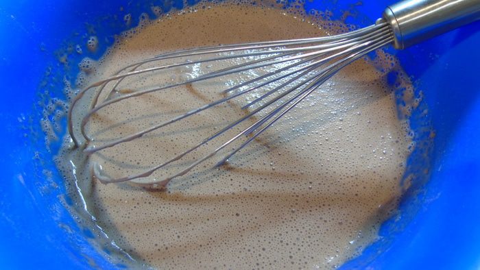 Вводим постепенно сухую смесь, все время перемешиваем, чтоб не образовывалось комочков.