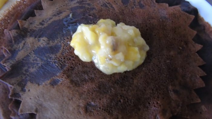 На блин выкладываем начинку (1 столовая ложка).