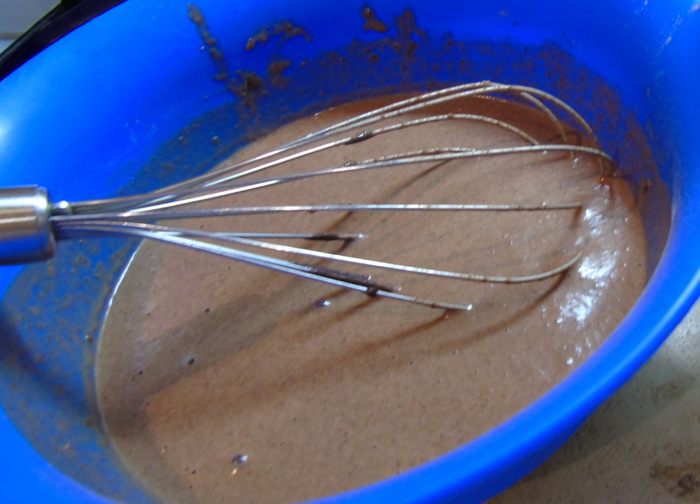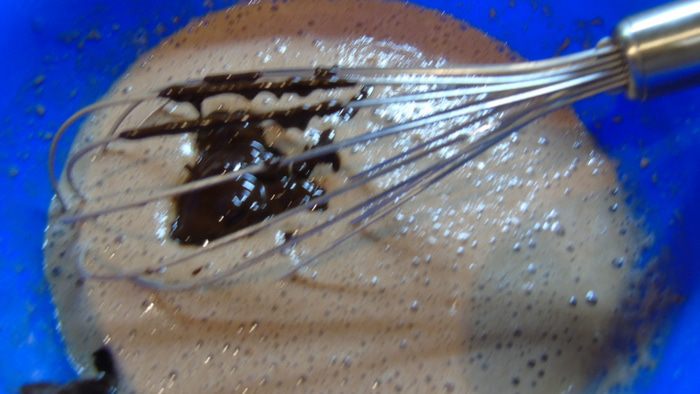 Добавляем шоколад в тесто и хорошо перемешиваем.