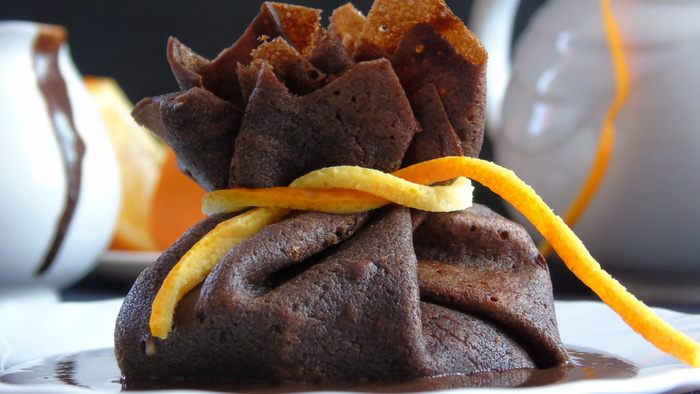Для соуса растопите шоколад со сливками... При подаче налейте соуса и сверху выкладывайте блин. Это очень вкусно... Приятного аппетита!!!