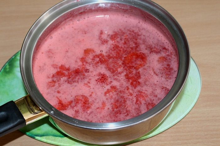 Затем довести до кипения, добавить сахар и клубнику. Добавьте сначала 0,5 стакана сахара, попробуйте, возможно вам понадобится больше.