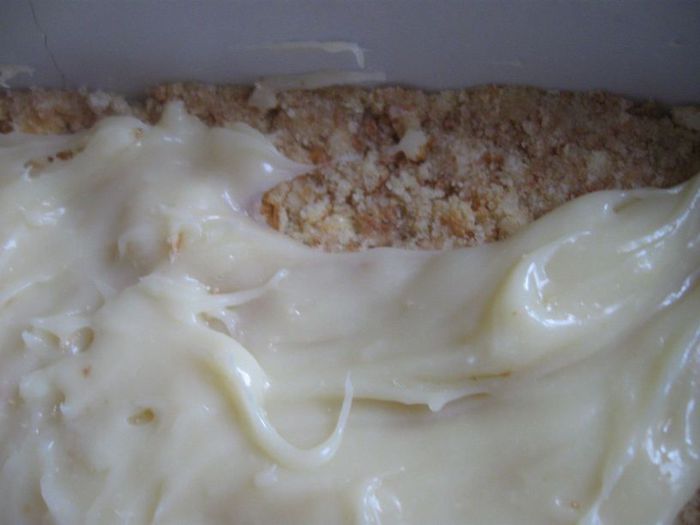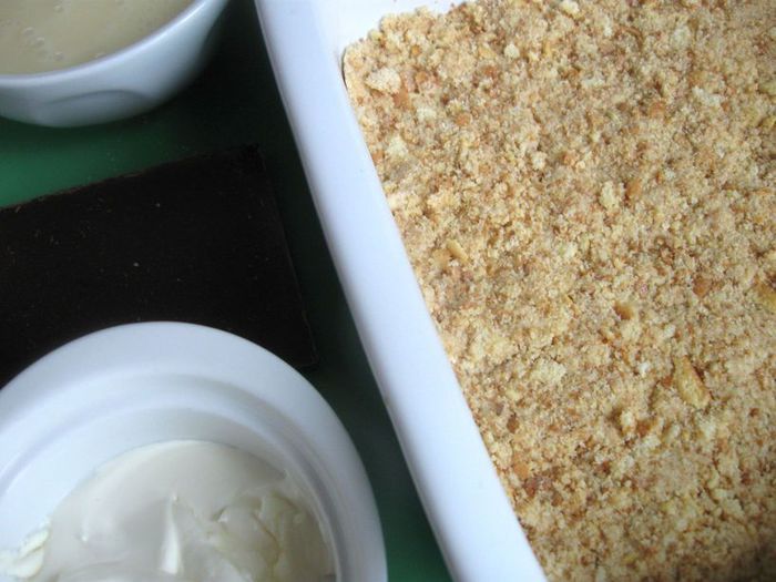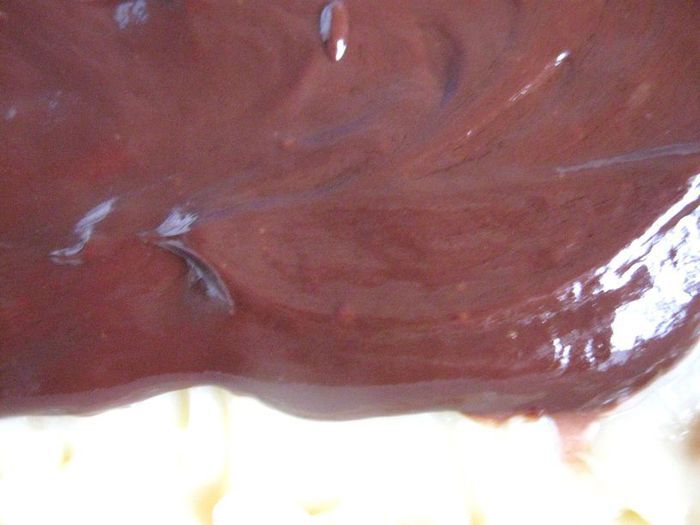 Поломать шоколад на кусочки, растопить со сливками на маленьком огне, помешивая, слегка остудить и полить шоколадным кремом сверху крема из сгущенного молока, распределив равномерно по поверхности. Убрать в холодильник на 5-6 часов минимально. Аккуратно порезать кубиками со стороной 2,5 см, можно чуть меньше.