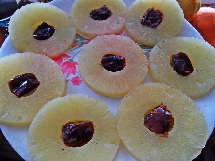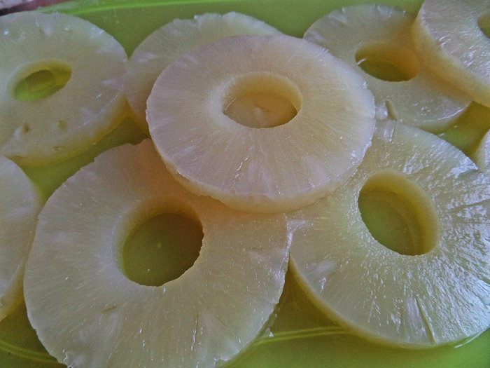 Нужна банка ананасовых колечек в сиропе. Сироп сцеживаем.