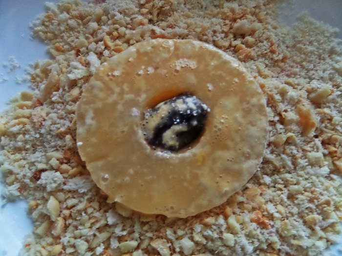 Взбиваем яйцо и окунаем кольцо в яичной смеси.