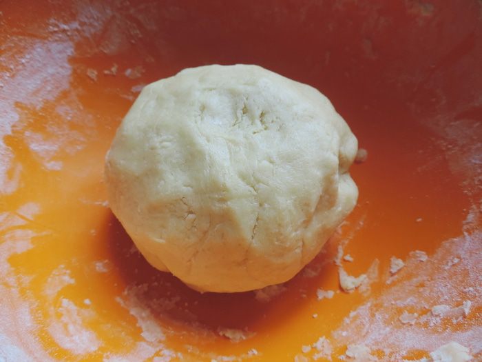 Добавить к масляной массе смешанные муку и разрыхлитель. Замесить тесто.
