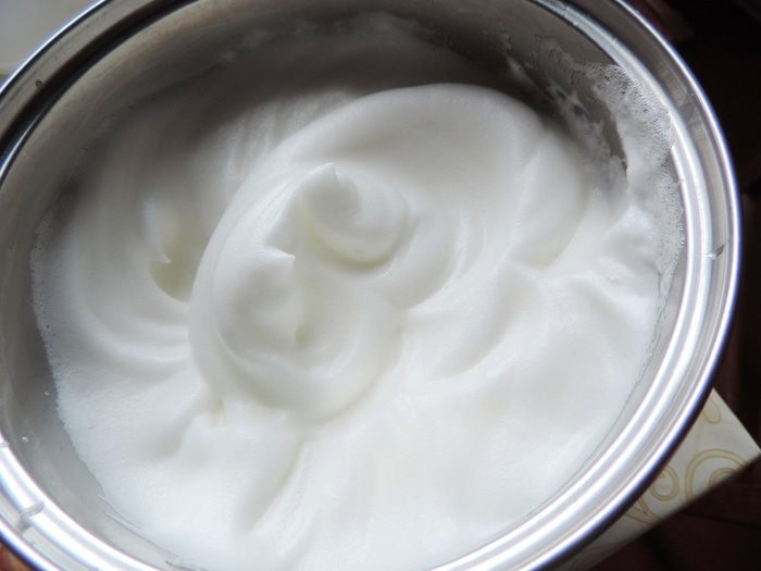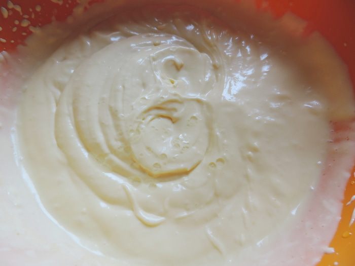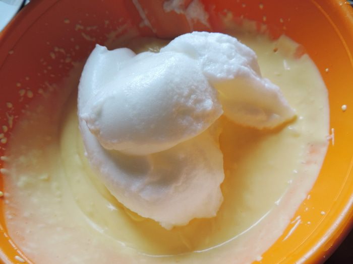 Аккуратно в три приема соединяем взбитые белки со сметанной массой.