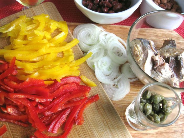 Он легкий, пикантный, очень вкусный. Сардины можно, по вашему желанию, заменить тунцом или анчоусами. Если будете добавлять анчоусы, сократите количество каперсов.