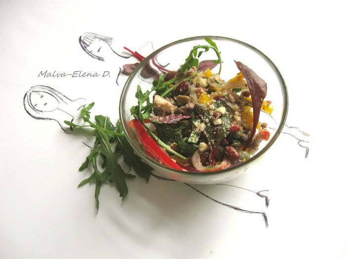 С этого салата можно начать ваше утро, можно сопроводить им обед, в нем собрано все самое полезное, что создала природа, вкус его насыщенный, яркий.