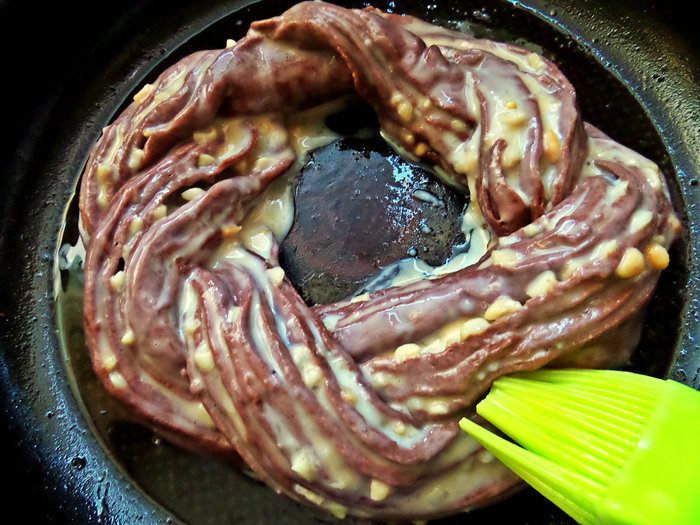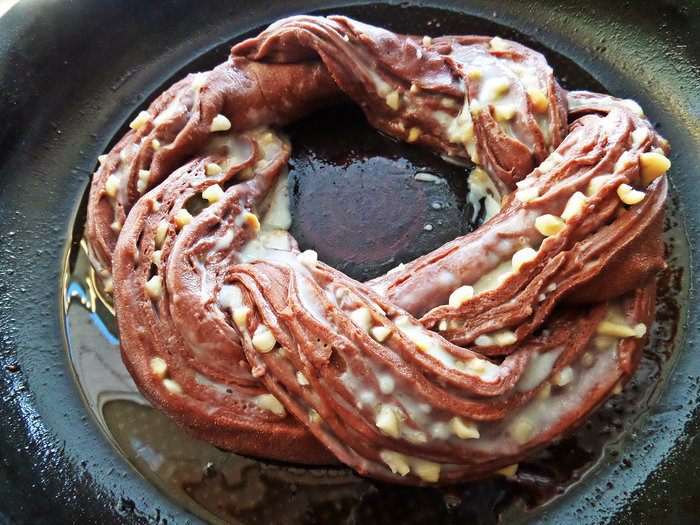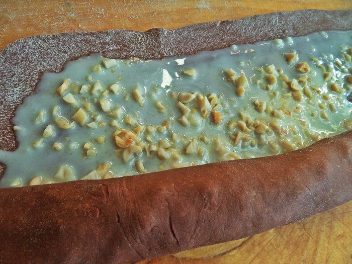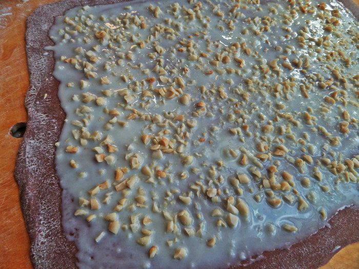 Рецепт повторила от Светы (diana1616) Добавления от себя: скрутила рулет калачом и заменила миндаль на жареный арахис.