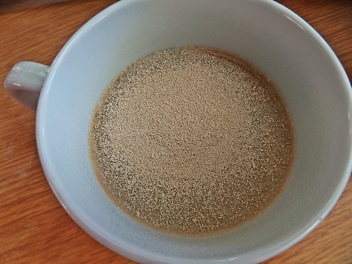 Растворяем дрожжи в тёплой воде в чашке.