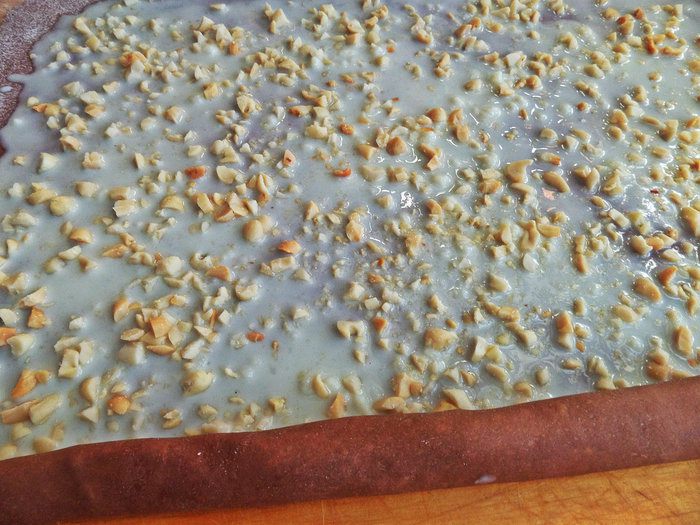 Посыпать орехами по всей поверхности примерно 2 горсти.