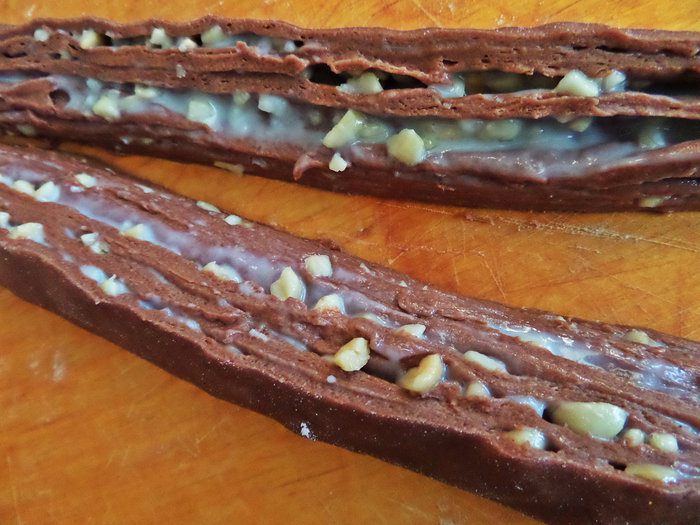 Очень нравится мне такая формовка теста, да и само тесто привлекло внимание Оно эластичное, податливое, не рвётся, а также отлично сочетается со сливочной начинкой и орешками! Можно также использовать готовое тесто от "Сибирского гурмана".