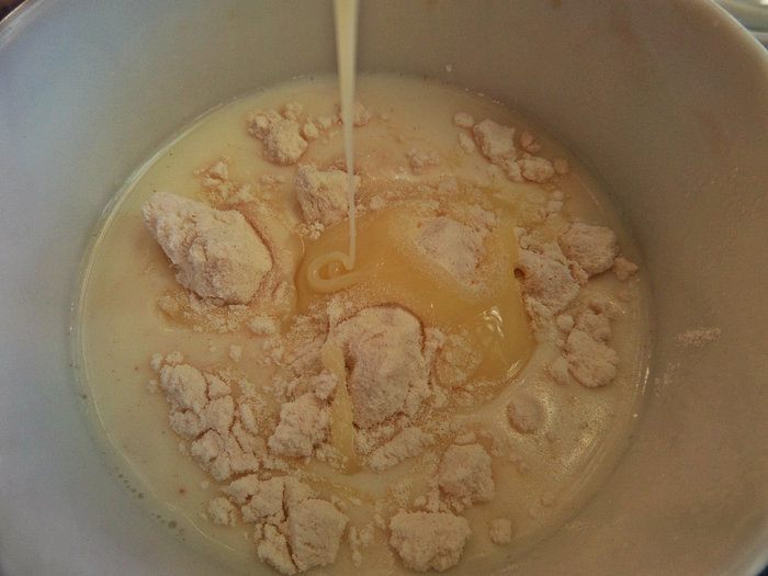 Вливаем разведённые дрожжи.