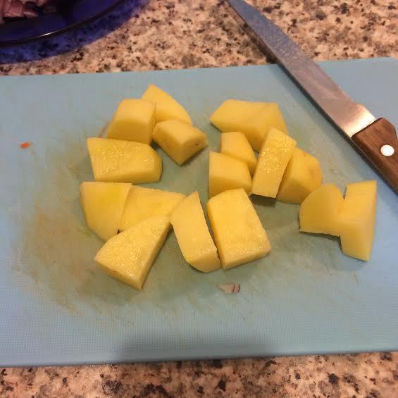 Картошку. Бульон от рыбы процедить и залить овощи. Варить минут 5.