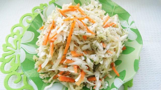 Заправить наш витаминный салат остренькой заправкой и подавать к столу.