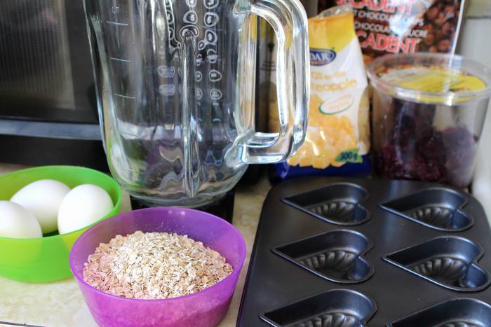 Подготовим все ингредиенты и включим нагреваться духовку на 180°C. Я готовлю в форме, так как люблю это овсяное печенье именно высоким, воздушным, а не плоским, каким бы оно было, если его просто выливать порционно на противень.