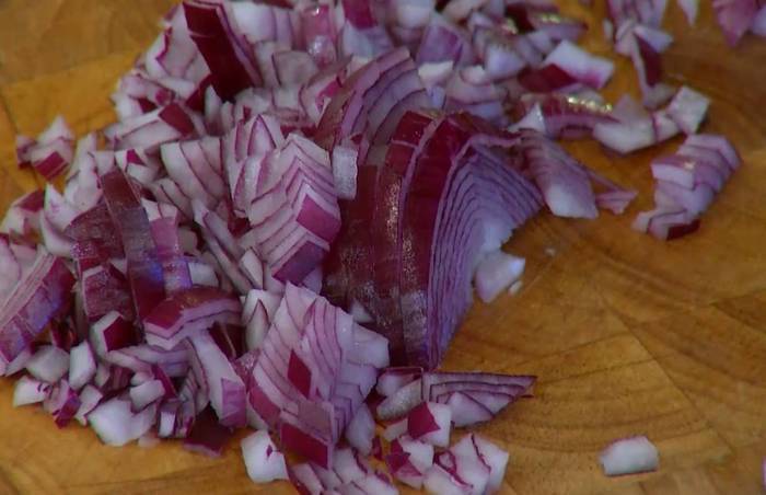 Одну луковицу и зубчик чеснока почистить и мелко порубить.
