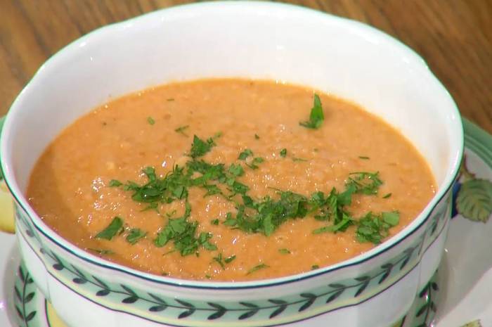 Суп разлить в тарелки, сбрызнуть оливковым маслом Extra Virgin и посыпать петрушкой.
