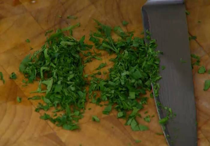 Петрушку мелко порубить.