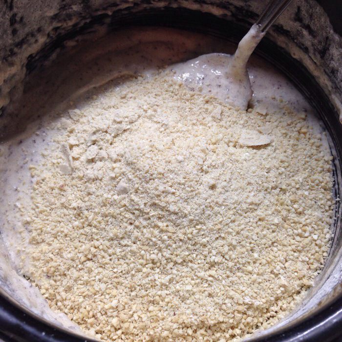 Всыпать измельчённые любые орехи и все перемешать.