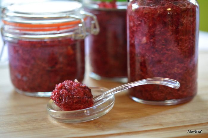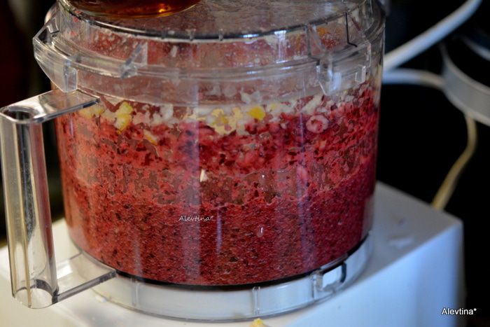 Затем добавить клюкву. Порубить все вместе насадка нож. Добавить остатки меда или, как вам нравится, по вкусу.