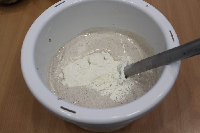 Добавить оставшуюся муку, перемешать.