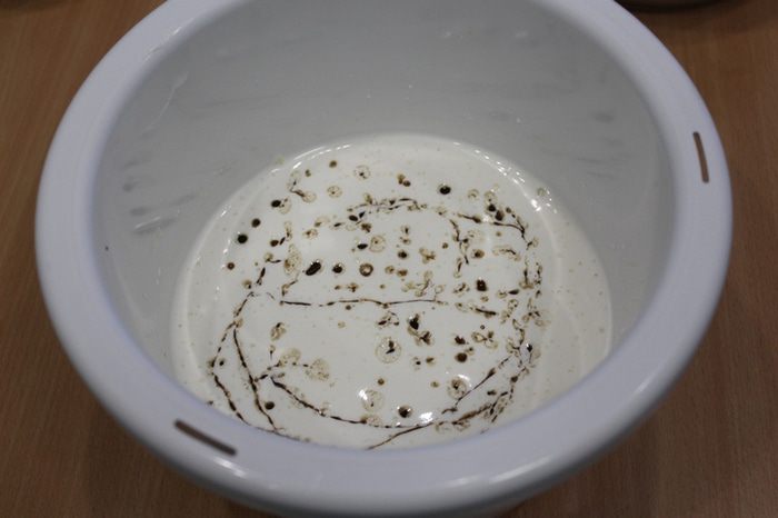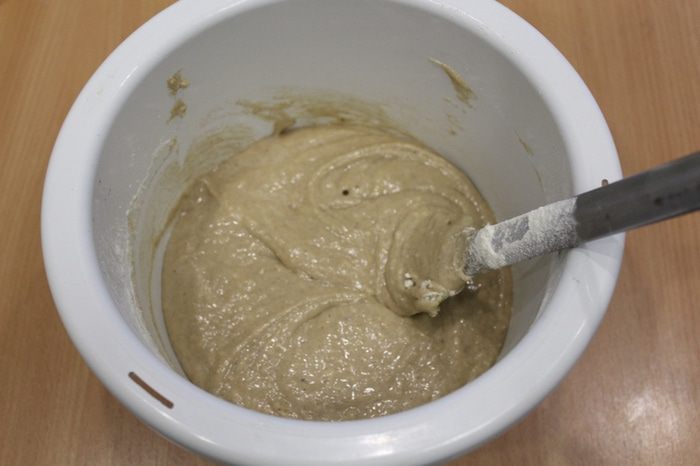 Затем добавить частями муку и молоко, аккуратно перемешать.