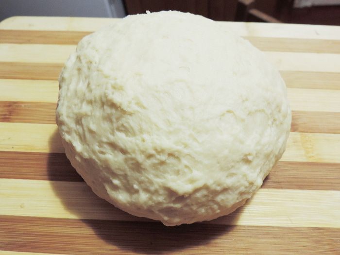 Собрать тесто в шар, накрыть сухим чистым полотенцем и оставить на полчаса.