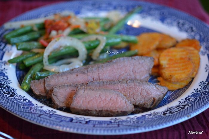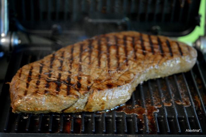 Готовим на разогретом гриле или в духовке. До готовности, как нравится, с кровью или без. 10 минут до средней прожарки обе стороны.