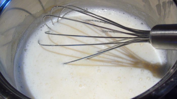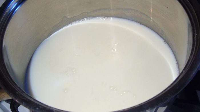 Молоко смешиваем с половиной сахара и доводим до кипения.