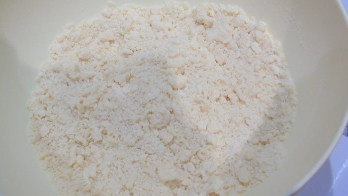 Муку перемешайте с солью и сахаром, добавьте сливочное масло и разотрите в крошку.