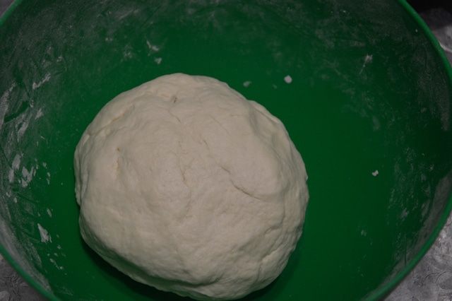 Замесим тесто. В сметану добавляем соль и постепенно вмешиваем муку. Муки может уйти и больше. Тесто получается мягкое, не липнущее к рукам, с ним работать одно удовольствие. И оставляем на время.