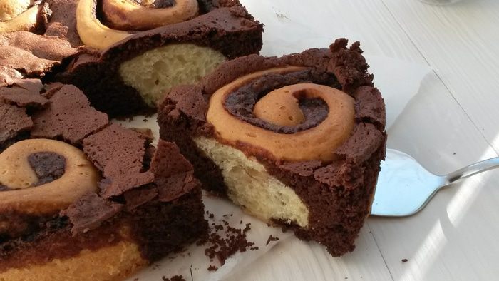 А этот пирог уже давно хотела приготовить. И вот, нашелся повод! Помимо того, что выглядит он сногсшибательно, еще и безумно вкусный получился! Два вида теста, сдобное дрожжевое и кексовое. Пушистые булочки с кремовой шоколадной начинкой утопают в нежном шоколадном тесте с тонкой хрустящей корочкой, которая образует паутину трещинок при первом же прикосновении ножа! О, как завернула)