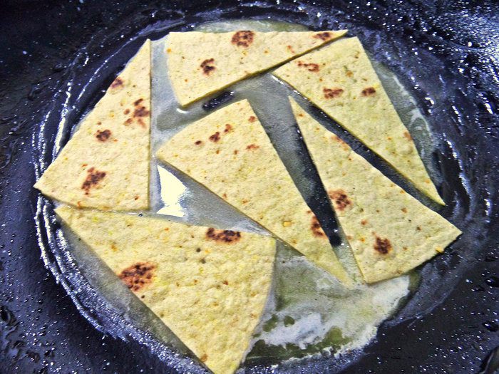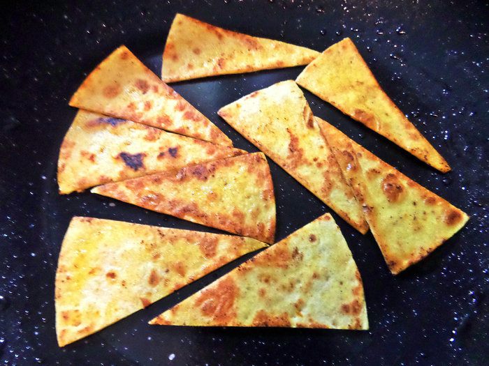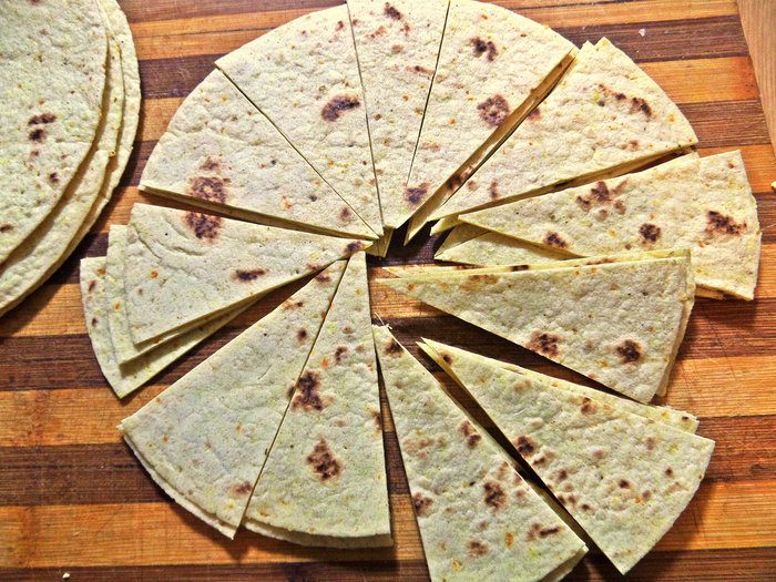 Продолжаю работать с кукурузным тортильями, но можно взять простой лаваш и нарезать на треугольники. Утром я складываю тортилью (лаваш) пополам, посыпаю внутрь тёртым сыром и обжариваю с двух сторон — вот мой любимый завтрак с кофе!