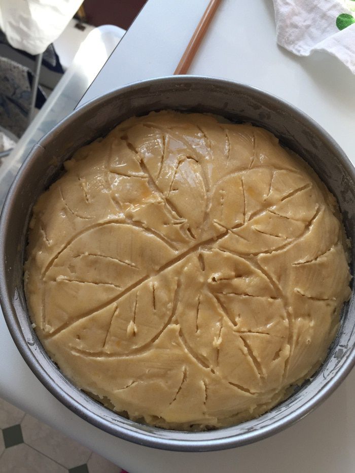 Деревянной палочкой наносим рисунок, прокалываем в нескольких местах. Отправляем в духовку на минут 45 или до красивого румяного цвета.