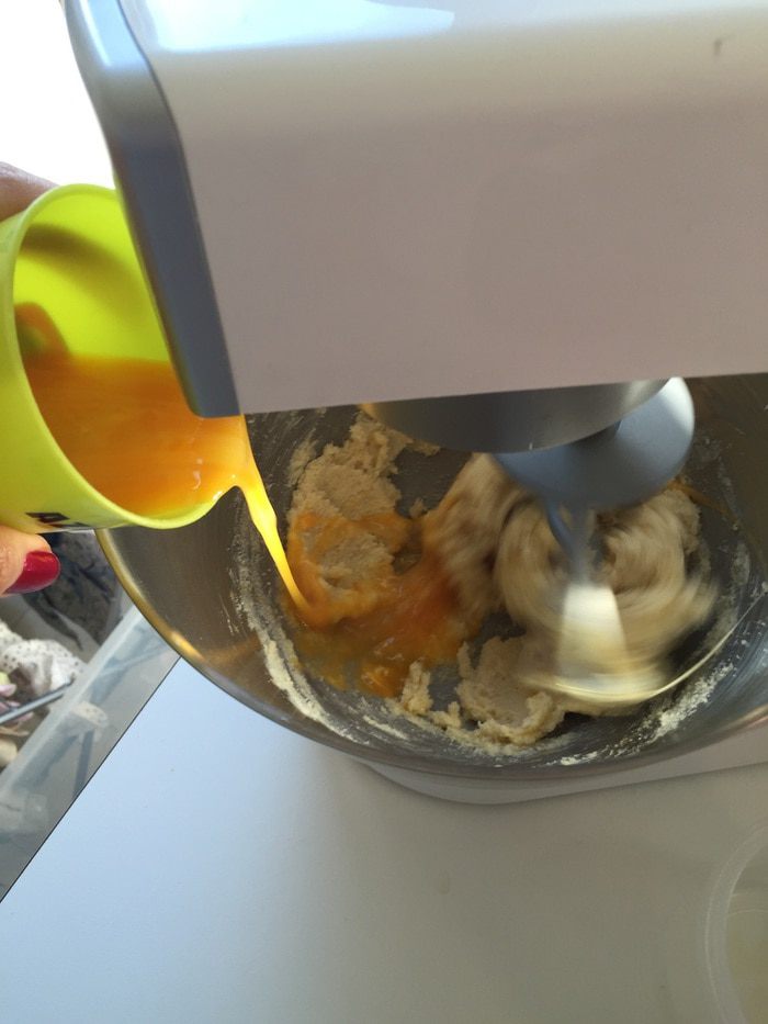 Теперь яйца и яичный желток в два захода. И апельсиновую эссенцию (в оригинале 15 г рома).