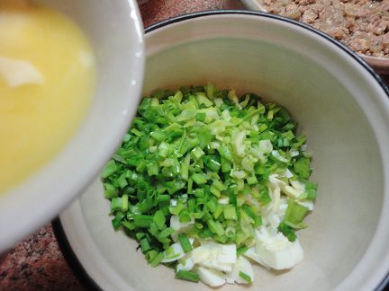 Затем яйцо с луком.