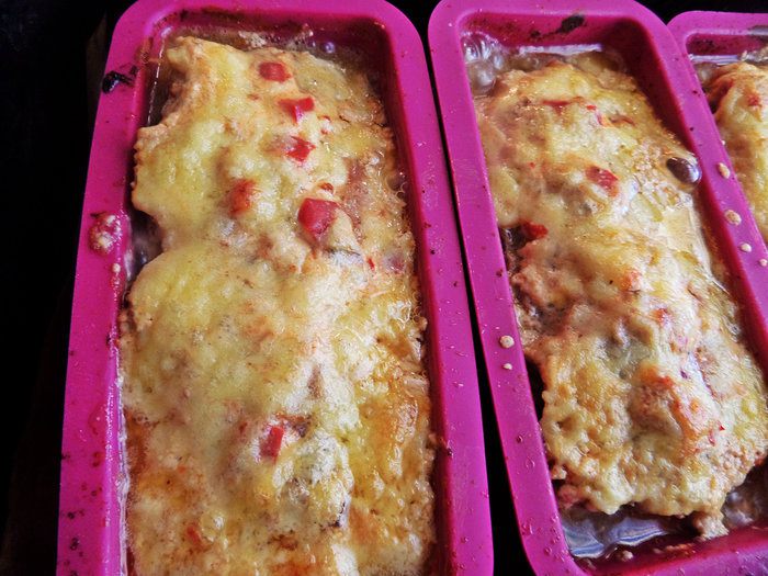 Запекаем ещё минут 15-20 до расплавления сыра и пока заливка не пропитает весь фарш.