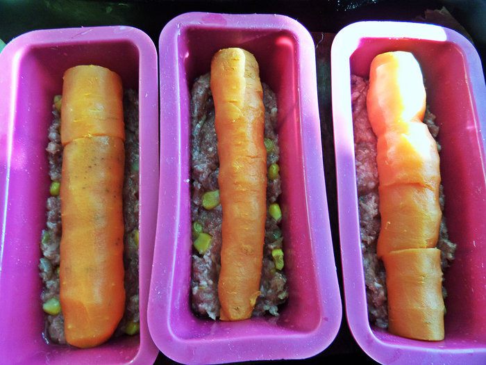 Купила себе подарочек — формочки силиконовые (очередные, но таких не было, не порядок!), они не только для кексов, вот Вам доказательство: мясные буханочки! От меня добавочки и любимая морковка! Получилось ярко, не трудно и вкусно.